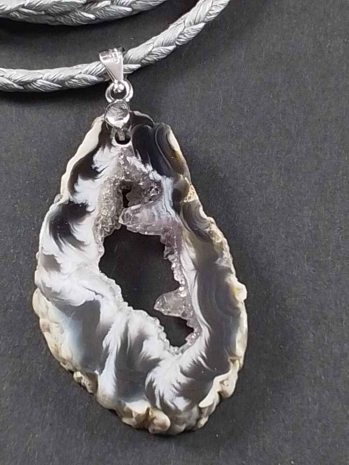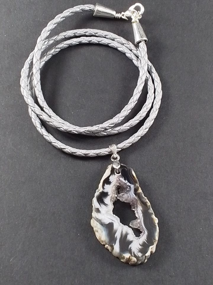 Skivet agat geode i vegansk lædersnøre