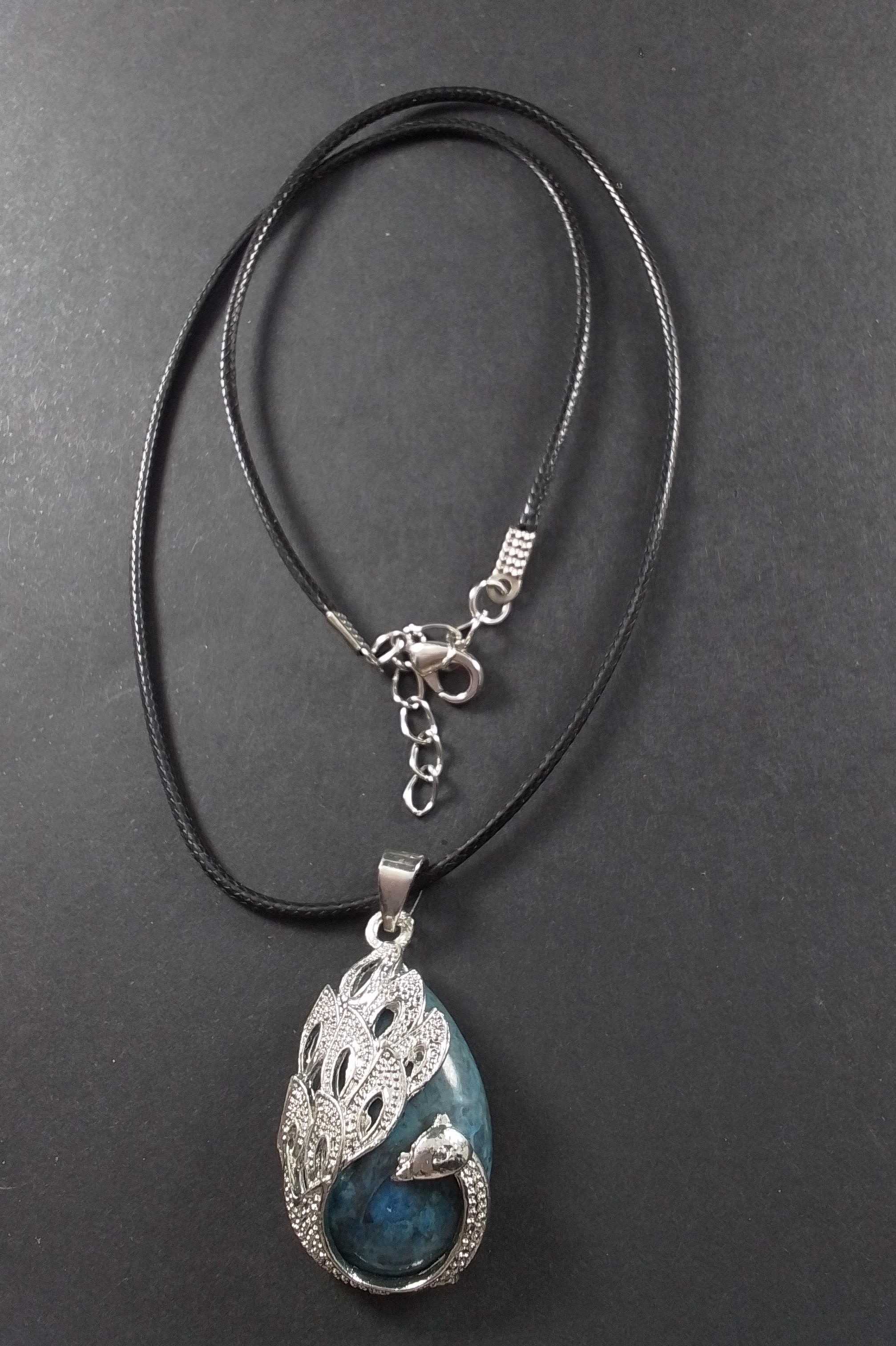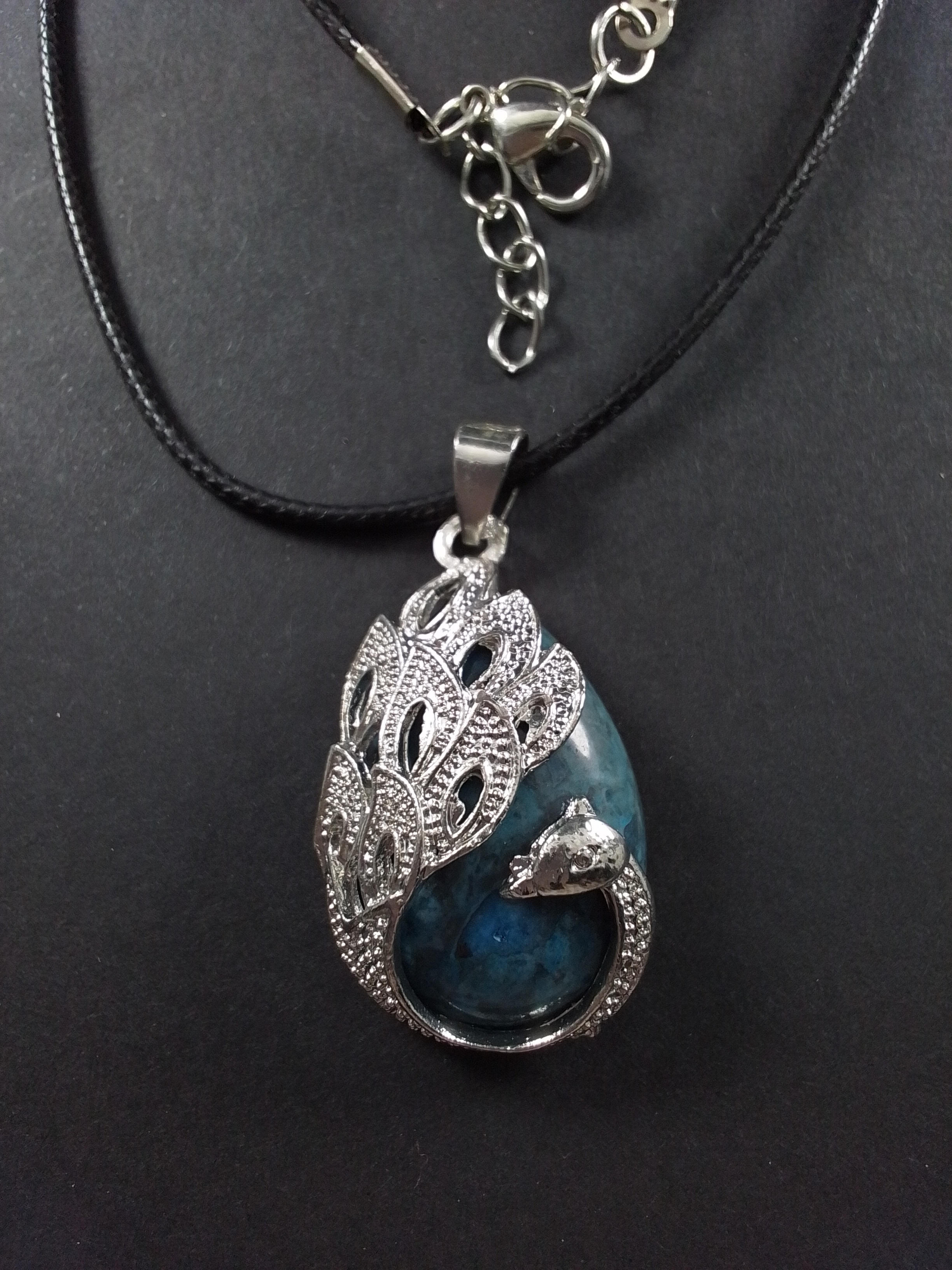 Læderstrop med turkis i sølv påfugle indfatning